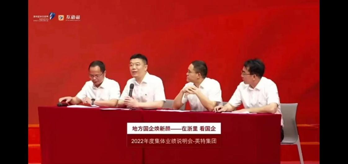 5月17日,深圳證券交易所上市大廳,浙江省國(guó)資委聯(lián)合深圳證券交易所共同舉行“地方國(guó)企煥新顏——在浙里 看國(guó)企”浙江國(guó)有控股上市公司2022年度集體業(yè)績(jī)說(shuō)明會(huì)暨“走進(jìn)深交所”活動(dòng)。浙江省國(guó)資委黨委委員、副主任顧濤出席活動(dòng)并致辭。英特集團(tuán)作為5家在深交所掛牌的浙江國(guó)有控股上市公司代表之一,作業(yè)績(jī)說(shuō)明并集中回答了投資者提問(wèn)。公司黨委書(shū)記、董事長(zhǎng)應(yīng)徐頡,黨委委員、董事、副總經(jīng)理費(fèi)榮富,獨(dú)立董事陳昊(線(xiàn)上),董事會(huì)秘書(shū)譚江,財(cái)務(wù)負(fù)責(zé)人曹德智參加了本次業(yè)績(jī)說(shuō)明會(huì)。