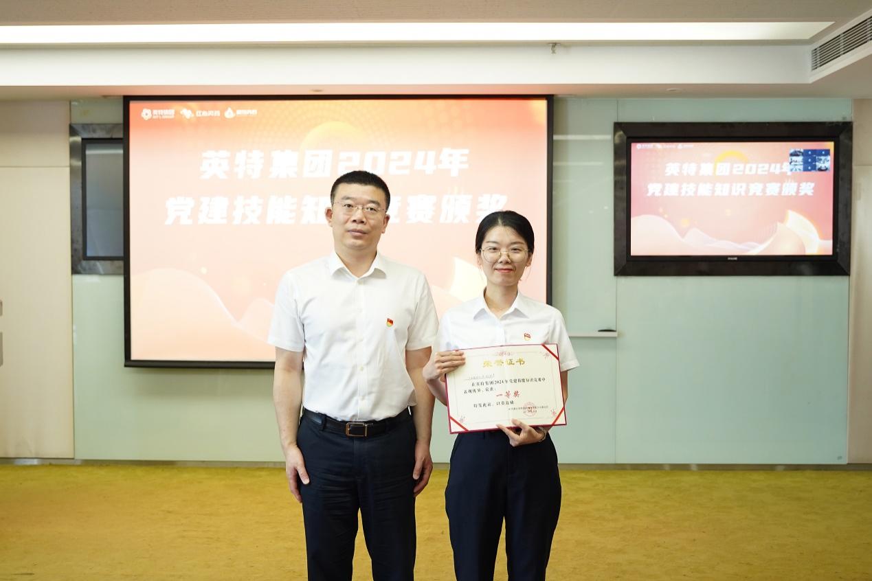 在此前舉行的英特集團2024年黨建技能知識競賽中,寧波銷售中心第一黨支部獲得一等獎,英特物流第三黨支部、英特怡年黨支部獲得二等獎,集團總部第一黨支部、英特物流第六黨支部、英特醫(yī)貿(mào)黨支部獲得三等獎。大會現(xiàn)場對英特集團2024年黨建技能知識競賽和“職場實盤”第二季——業(yè)財智領(lǐng)挑戰(zhàn)賽獲獎團隊進行了表彰。