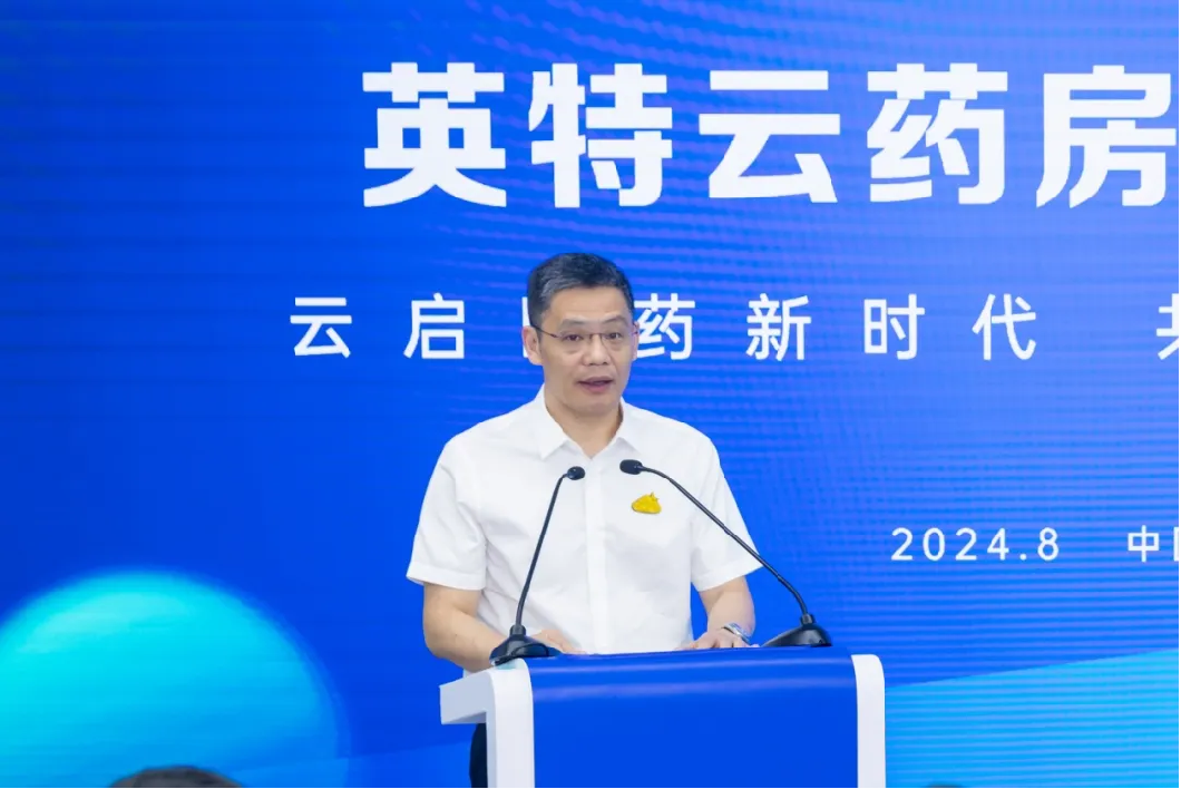 汪洋作“英特云藥房”項(xiàng)目介紹。領(lǐng)導(dǎo)嘉賓共同為“英特云藥房”項(xiàng)目啟動(dòng)儀式按下啟動(dòng)鍵,點(diǎn)亮醫(yī)藥服務(wù)的智慧駕駛艙。